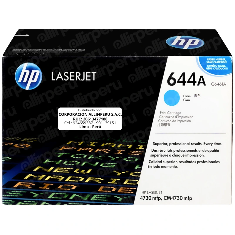 Palabras clave: Toner HP 644A Cian Q6461A, Cartucho HP 644A Cian, Toner HP Q6461A, HP 644A Cian Perú, Toner para LaserJet 4730, Toner para CM4730, Cartucho Cian HP, Suministro HP Original, Toner HP Precio, Compra Toner HP Lima, HP 644A Cian Venta, Cartucho Q6461A