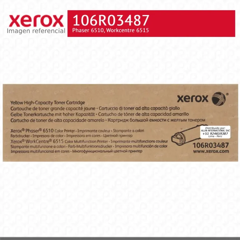 Toner Xerox 106R03487 Amarillo 2.4K Phaser 6510, Workcentre 6515 Alta capacidad