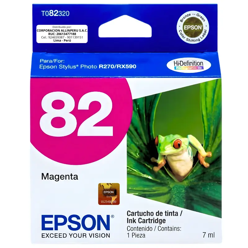 En AllinPerú usted recibe únicamente cartuchos Epson originales y sellados de fábrica, sin remanufacturados ni rellenados. Despachamos a todo el Perú en 2 días hábiles y cada compra incluye 6 meses de garantía respaldada por nuestro equipo. El código T082320-AL que recibe corresponde a la distribución oficial de Epson para América Latina, con la formulación de tinta que garantiza los 500 páginas de rendimiento declarados por el fabricante y la precisión de color que sus fotos merecen.