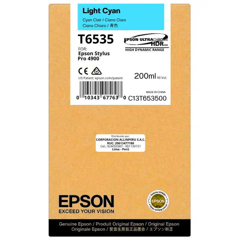 Tinta Epson T653500 Light Cyan original en AllinPerú: garantía y envío a todo el Perú