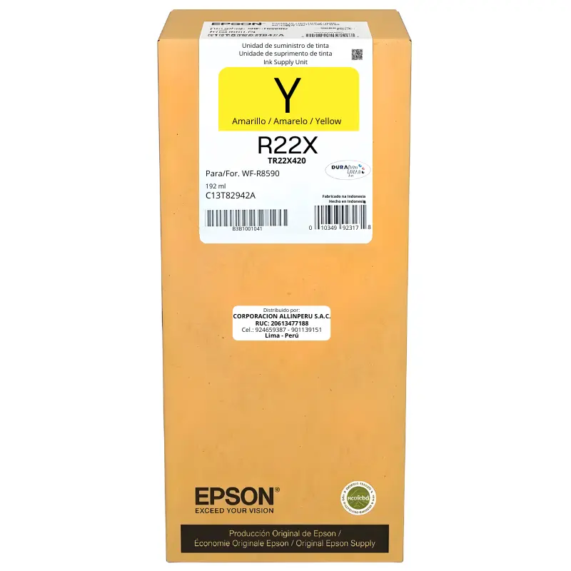 En AllinPerú trabajamos exclusivamente con productos originales sellados de fábrica, sin remanufacturados ni cartuchos recargados. Cada tinta Epson TR22X420 que despachamos sale directo del empaque del proveedor autorizado. El envío llega a cualquier departamento del Perú en 2 días hábiles desde la confirmación del pedido. La garantía de 6 meses cubre defectos de fabricación: si el cartucho presenta falla sin haber sido manipulado, lo gestionamos sin burocracia. Puede contactarnos por WhatsApp o correo antes y después de su compra.