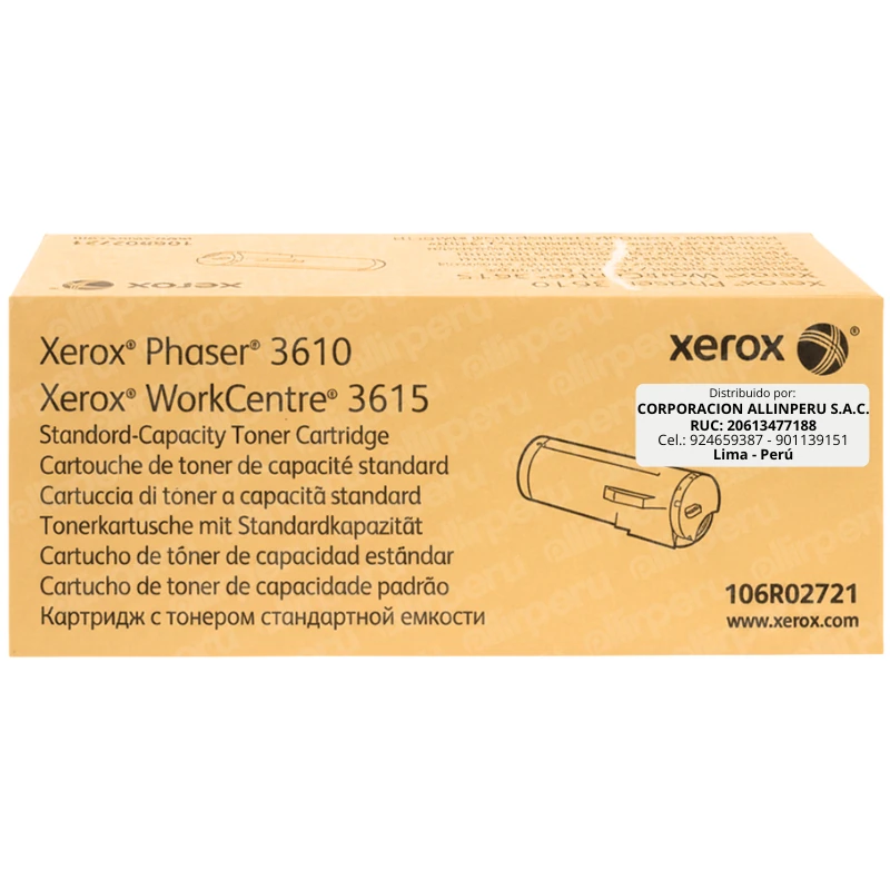Palabras clave: Toner Xerox 106R02721, Cartucho Xerox 106R02721, Toner para Phaser 3610, Toner para WorkCentre 3615, Xerox 106R02721 Perú, Toner original Xerox, Precio toner 106R02721, Venta toner Xerox Lima, Toner negro 5900 páginas, Xerox Phaser 3610 toner, WorkCentre 3615 cartucho, 106R02721 Perú precio