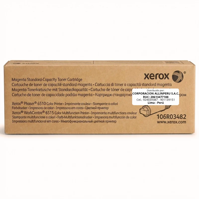AllinPerú lleva años atendiendo a empresas y usuarios en Lima desde Av. Uruguay 494, Interior 27, Centro de Lima (lunes a sábado, 9:00 a. m. – 7:00 p. m.). Solo trabajamos con productos originales sellados de fábrica: lo que le vendemos es lo mismo que sale de la línea de producción del fabricante. El tóner Xerox 106R03482 incluye garantía de 6 meses y lo despachamos en 2 días hábiles a cualquier punto del Perú. Si tiene dudas sobre compatibilidad antes de comprar, nuestro equipo técnico responde en el mismo día.
