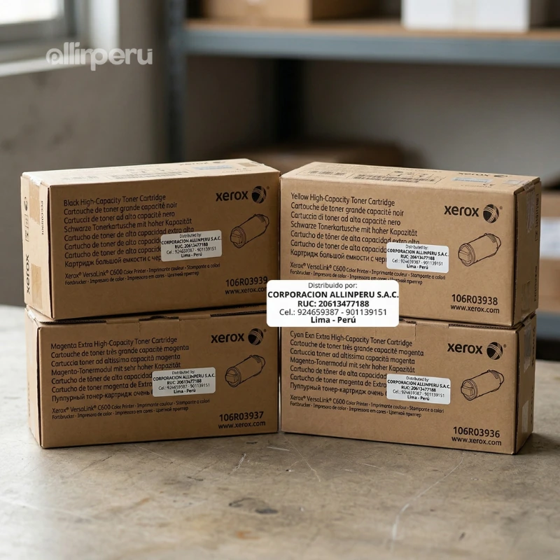 Los cartuchos originales Xerox incluyen sellos de seguridad en el embalaje, etiqueta con número de parte impreso y chip de autenticación que la impresora valida al momento de la instalación. En AllinPerú despachamos únicamente productos sellados de fábrica; si el sello está roto al momento de la recepción, puede rechazar el paquete.
